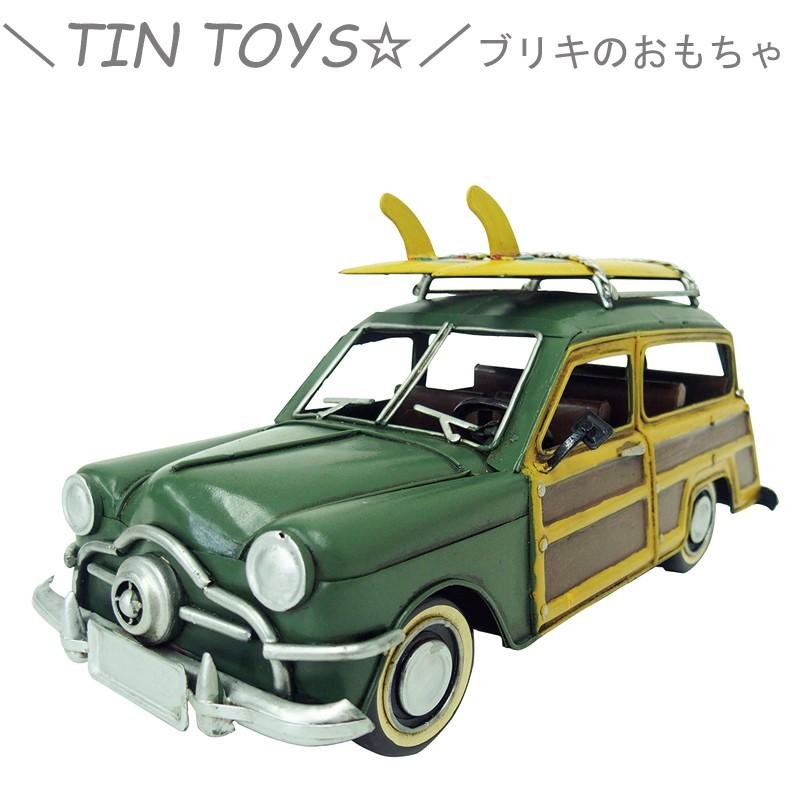 Amazon ブリキのおもちゃ ブリキ おもちゃ 車 アンティーク クラシックカー フォード ウッディーワゴン風 レッド プラモデル 通販