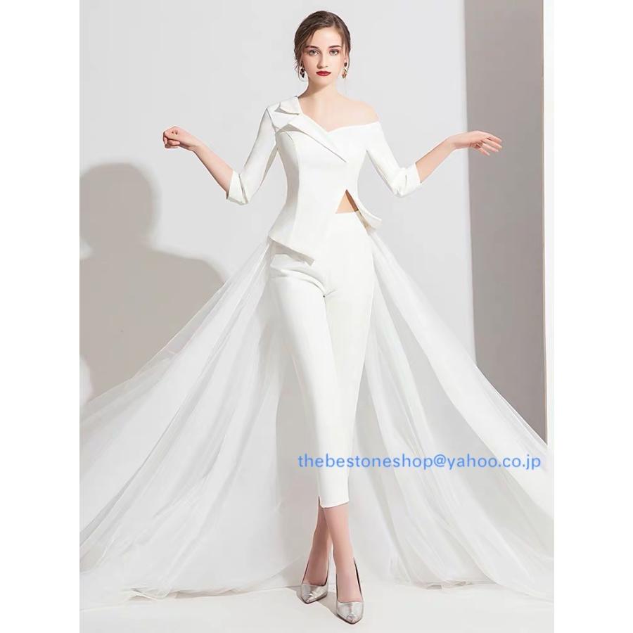 パンツウェディングドレス ドレススーツ お花嫁ドレス パンツドレス パーティードレス 上下セット パンツスタイル パンツスーツ トレーン 9分丈パンツ 結婚式 B777 The Best One 通販 Yahoo ショッピング