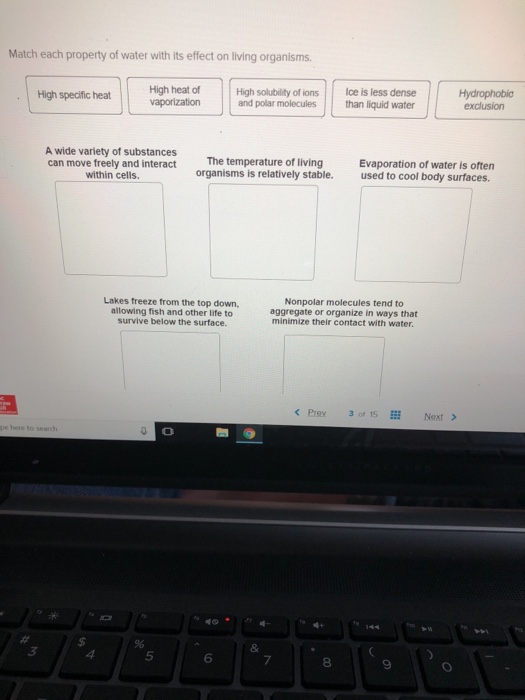 Solved Match Each Property Of Water With Its Effect On Li Chegg Com