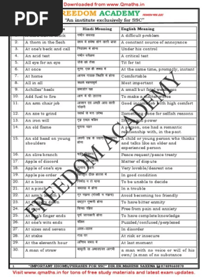 Idioms And Pharases With Hindi English Meaning Www Qmaths In 1 Nature