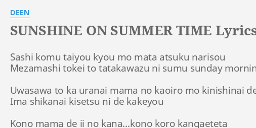 Sunshine On Summer Time Lyrics By Deen Sashi Komu Taiyou Kyou