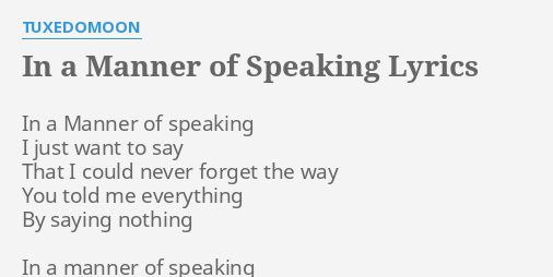 In A Manner Of Speaking Lyrics By Tuxedomoon In A Manner Of