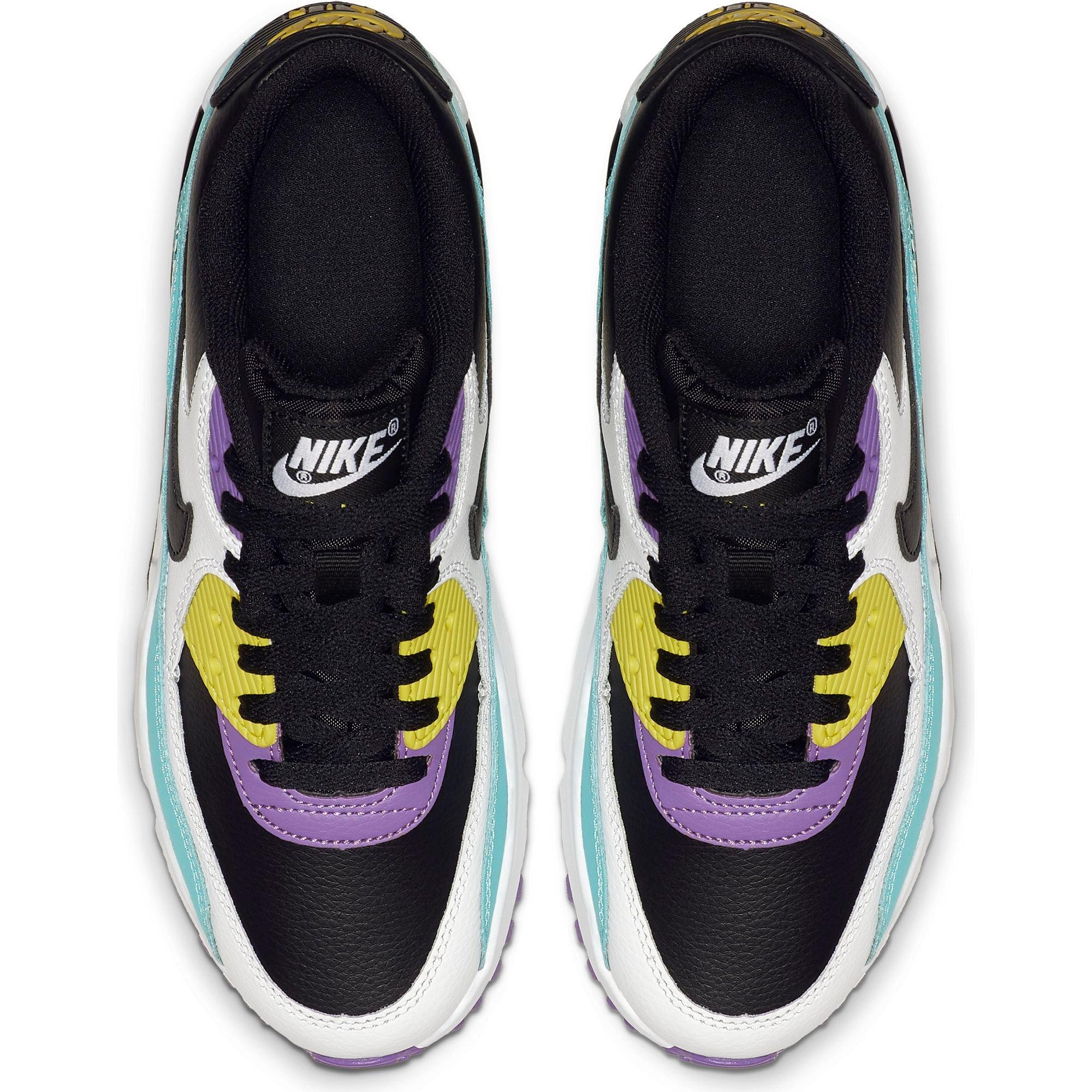 Your one stop shop for all things sports performance gear for football basketball baseball track and everything in between. Nike 833412 104 grade school air max 90 ltr gs white black pure platinum. Shop the latest selection of nike air max 90 at foot locker. Nike air max 90 leather black white violet grade school kids shoe.
